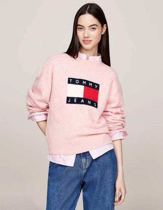 Jersey Tommy Jeans de Melánge de Lana Rosa Mujer