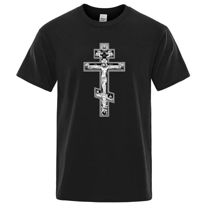 con una cruz ortodoxa de estilo gótico oscuro y un estampado de angelito, es perfecto para salidas informales.