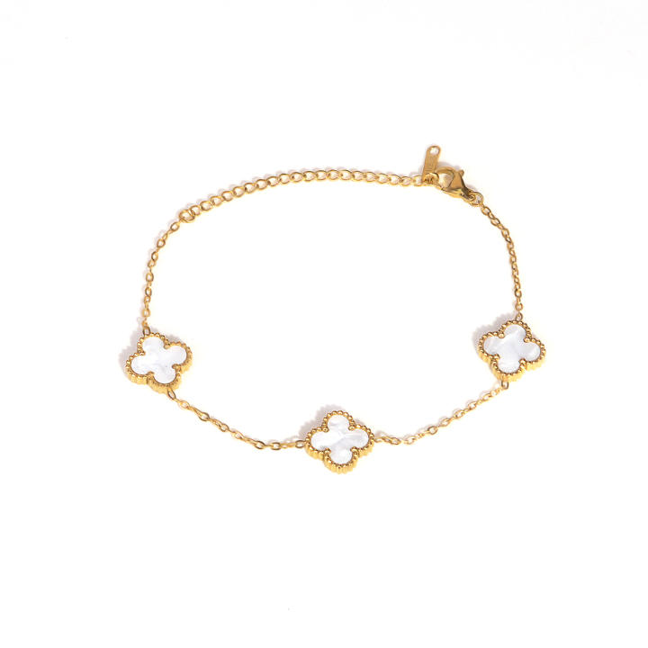 Pulsera de Trébol de Cuatro Hojas de Acero Inoxidable con Recubrimiento de Oro 18K