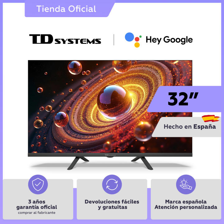 El televisor Smart TV, TD Systems K32DLC20GLQ, monta un panel QLED de 32 pulgadas con resolución HD. Este modelo permite disfrutar de las múltiples opciones que ofrece la tecnología SmartTV con Google Chromecast integrado, impulsado por el aprendizaje automático e inteligencia artificial que se apoya en el asistente virtual de Google Assistant y del nuevo sistema de televisión híbrida Hbbtv, que permite conectar el equipo a Internet, recuperar programas de las cadenas de televisión, e incluso utilizar aplicaciones interactivas, entre otras funciones.