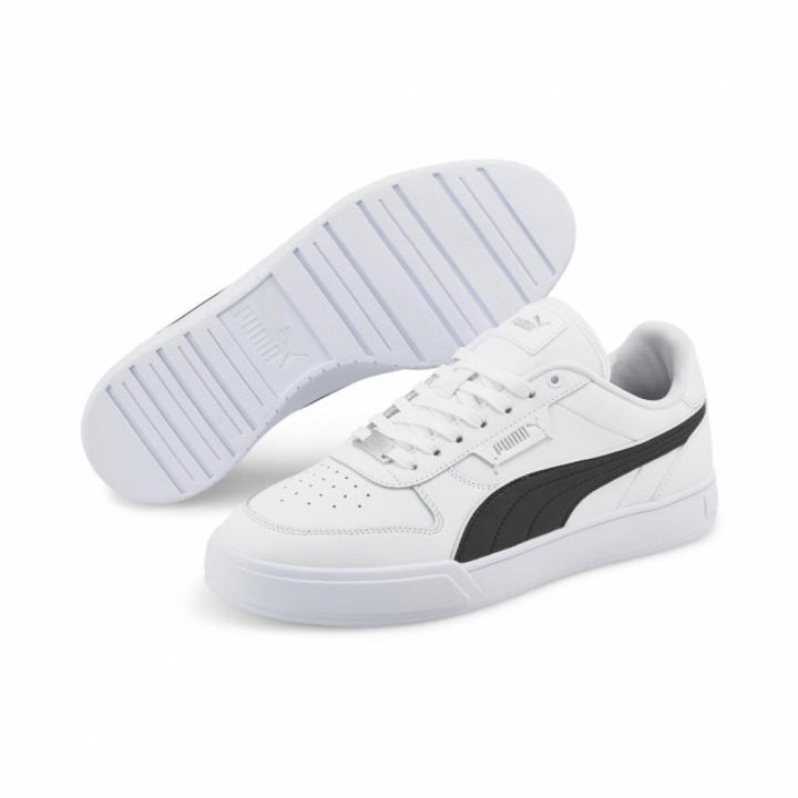 Zapatillas Puma Caven en blanco y negro. Inspirado en una silueta clásica de baloncesto de los años 80. La parte superior de cuero sintético con cierre de cordones proporciona un ajuste perfecto. Mientras que el empeine perforado permite la comodidad del flujo de aire. Se completa con detalles del logotipo de Puma.