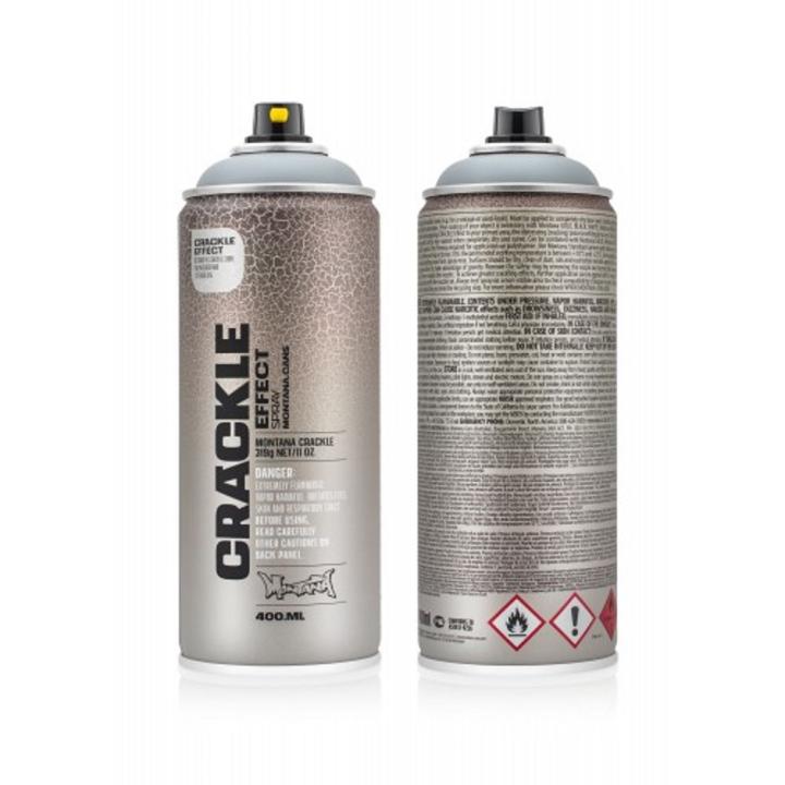 Montana Cans CRACKLE EFFEFCT es un revestimiento de pintura brillante de alta presión que se aplica sobre otras pinturas antes de que se sequen por completo para darle un aspecto craquelado. Deje que la capa base se seque al menos 45 minutos, pero no más de 24 horas antes de aplicar el aerosol con efecto CRACKLE. Después de aplicar CRACKLE EFFECT de manera extensa y uniforme en el área imprimada, comenzará a producirse el proceso de envejecimiento (agrietamiento). Para obtener los mejores resultados de craquelado, aplíquelo sobre una capa base completamente seca. El aerosol CRACKLE EFFECT tiene una alta cobertura y se puede aplicar una capa superior cuando esté completamente seco y curado. Para obtener mejores resultados, úselo con Montana Cans GOLD como capa base.