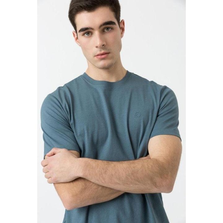 Camiseta de cuello redondo y manga corta. Cuello en rib. Detalle estampado delantero con relieve.