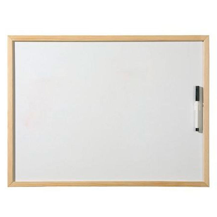 Tradineur - Pizarra blanca con marco de madera, incluye rotulador, fácil de borrar, ligera, ideal para colegios, tiendas, hogares, oficinas, 60 x 90 cm