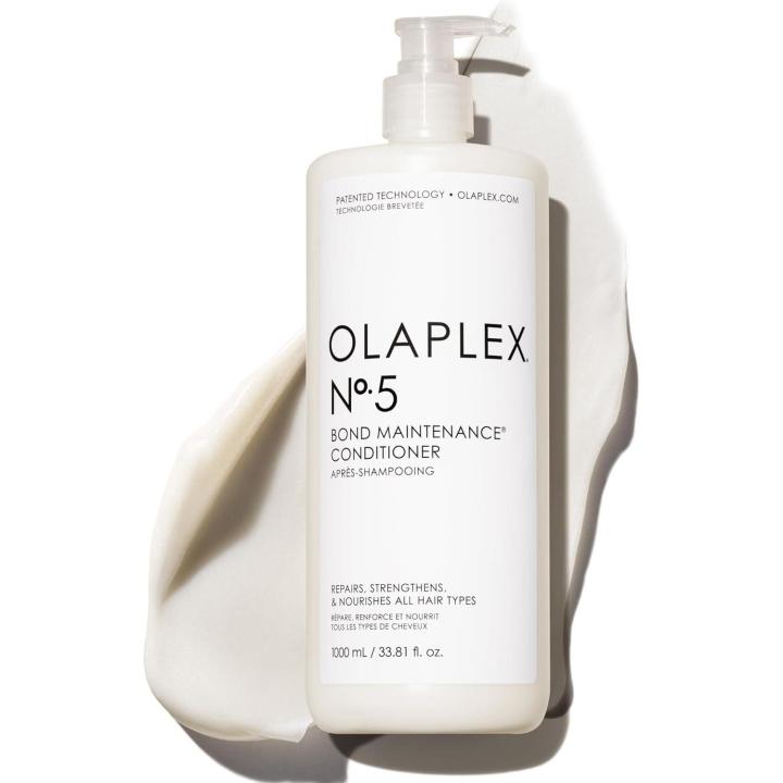 Olaplex Nº5 Bond Maintenance Conditioner 1000 ml es un acondicionador profesional formulado con la exclusiva tecnología OLAPLEX Bond Building, que repara los enlaces rotos del cabello y restaura la fuerza, la suavidad y la vitalidad de la fibra capilar desde el interior. Su fórmula altamente nutritiva hidrata en profundidad sin aportar peso, dejando el cabello manejable, sedoso y brillante.