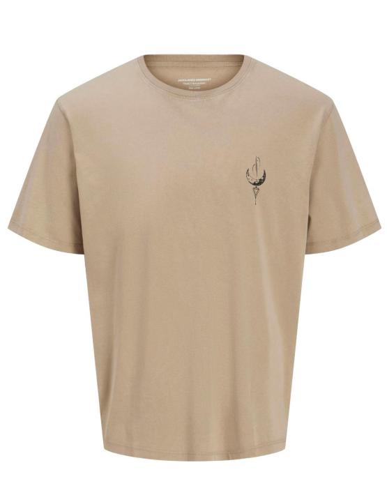 Camiseta Jack&Jones beige, de manga corta. Cuello redondo rematado en canalé, estampada en zona izquierda del pecho y la espalda. Hombros caídos y corte regular.