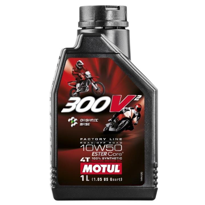 Lubricante 100% sintético para motos de competición (carretera y todoterreno) de cuatro tiempos desarrollado para equipos de fábrica. 300V² Factory Line aprovecha las últimas evoluciones de la tecnología ESTER Core® para garantizar la máxima potencia del motor sin comprometer la fiabilidad ni la protección antidesgaste. MOTUL ha seleccionado los ésteres por encima de otras bases sintéticas y orgán