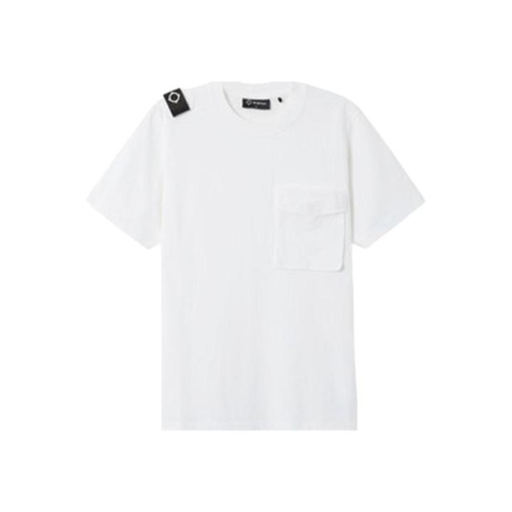 La camiseta con bolsillo cargo confeccionada con un algodón pesado tiene un ajuste regular y un cuello acanalado. La camiseta también tiene mangas cortas y dobladillo recto. También cuenta con un bolsillo cargo de inspiración militar con cierre a presión en el lado izquierdo del pecho.