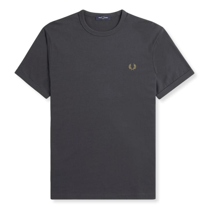 La camiseta ringer, usada en sus inicios como prenda de entrenamiento deportivo, fue adoptada posteriormente como parte integrante del uniforme subcultural. A partir de los años 70 se empezó a llevar en colores en contraste y con estampados gráficos llamativos. Nuestra versión incorpora los tonos clásicos de Fred Perry.