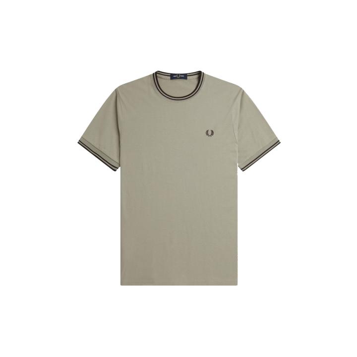 Una camiseta de cuello redondo con nuestro inconfundible ribete con dos franjas en el cuello y el borde de las mangas. Confeccionada en punto de algodón ligero y con nuestro corte recto. Cuenta la leyenda que un cliente de Lillywhites pidió personalizar un polo liso de Fred Perry con los colores de su equipo de fútbol y así nació nuestro ribete con dos franjas. Este elemento forma parte de nuestro ADN, ya que solo nosotros lo usamos en la proporción de grosor 5-4-4. Nuestra camiseta de cuello redondo, diseñada con nuestros inconfundibles detalles, presenta el ribete con dos franjas y la corona de laurel bordada en un color a juego. Absolutamente Fred Perry.