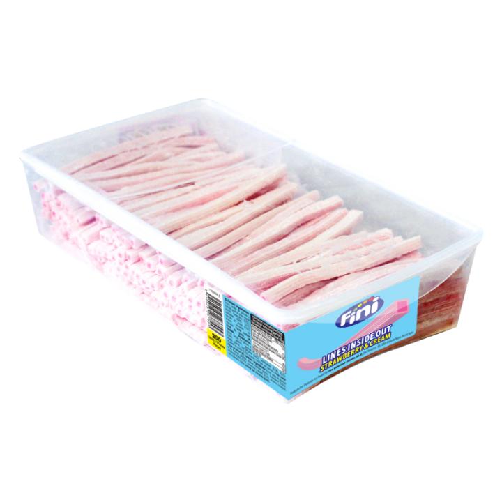 Disfruta de la combinación clásica de nata y fresa con las Lineas Nata y Fresa Fini. Estas deliciosas golosinas masticables ofrecen un equilibrio perfecto entre dulzura y cremosidad.
