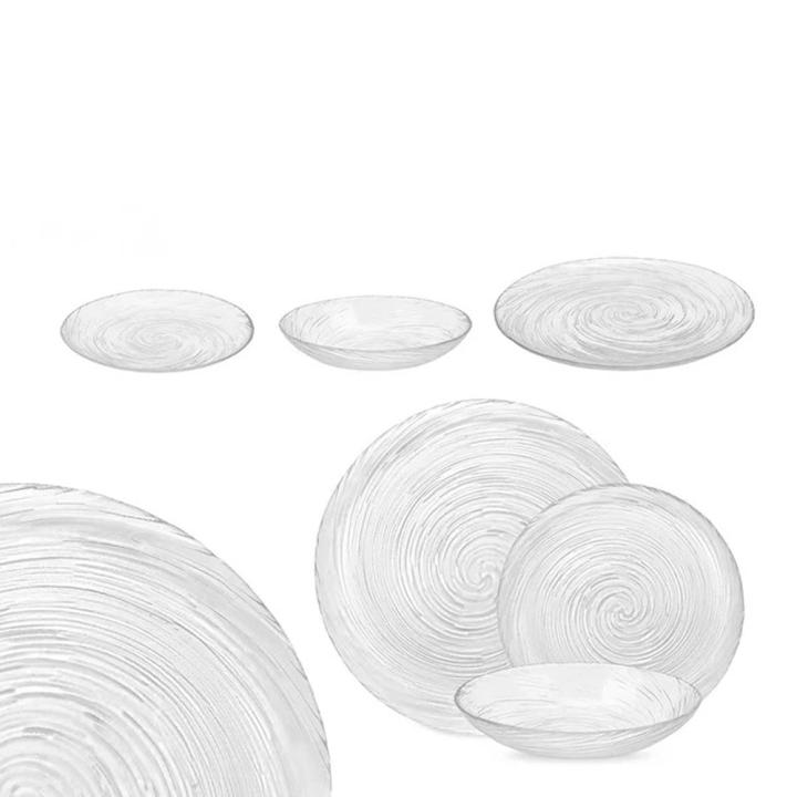 -Vajilla fabricada en cristal transparente con diseño haciendo un ligero relieve.