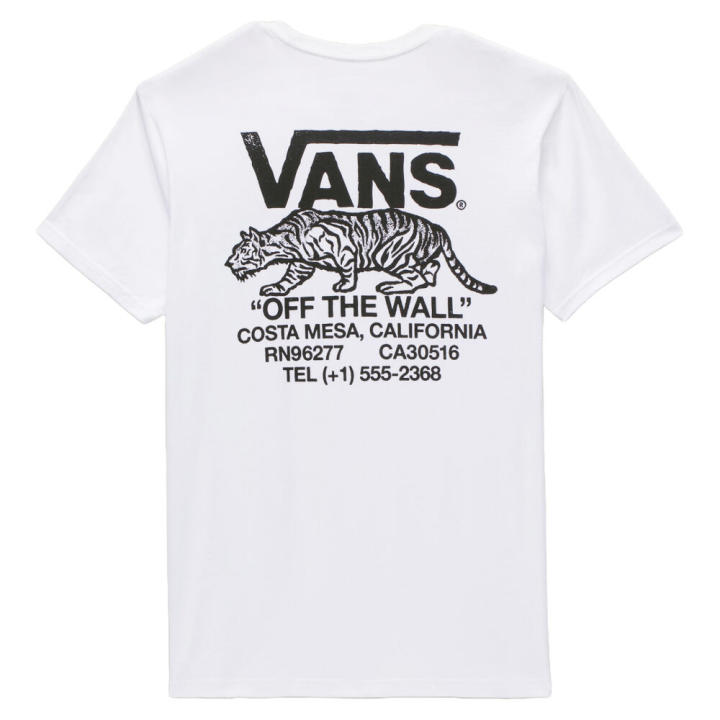 Camiseta Blanca Vans Sneaky SS Black Estilo Salvaje Manga Corta¡Añade un toque salvaje a tu estilo con esta camiseta Vans Sneaky!Esta camiseta blanca de manga corta presenta un diseño genial en la espalda. Tiene el logo clásico de "VANS" en la parte superior, seguido de un dibujo de un tigre con mucho estilo y la frase icónica "OFF THE WALL".Es una camiseta cómoda y con mucho rollo para llevar en tu día a día. ¡Perfecta para los fans de Vans y los que buscan una prenda original!Características: Color: Blanco Manga corta Diseño en la espalda con el logo de Vans, un tigre y texto Estilo casual y cómodo Ideal para combinar con tus zapatillas y pantalones favoritos¡No te quedes sin la tuya!