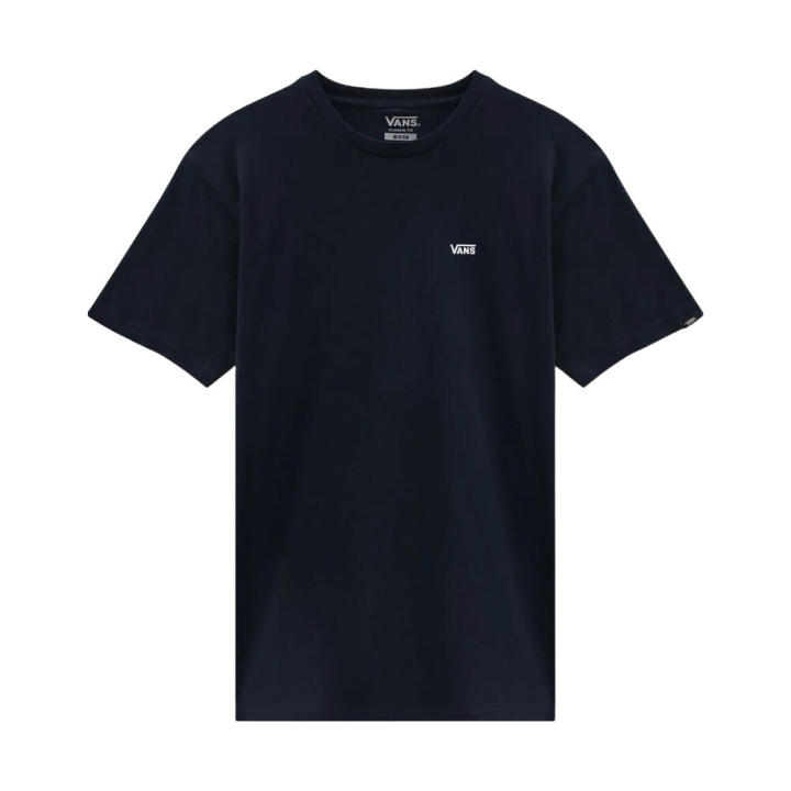 Camiseta Azul Marino Vans Left Chest Logo Tee Navy de Corte RegularCamiseta Vans Left Chest LogoDetalles Color: Azul marino oscuro Diseño: Clásico de manga corta con cuello redondo Logo pequeño de Vans en blanco en la parte izquierda del pecho. Etiqueta tejida con el logo de Vans en la manga izquierda. Ajuste: Regular fit, para un look cómodo y relajado. Ideal para: Un estilo casual y urbano, perfecta para combinar con jeans, pantalones chinos o shorts.CuidadoLavar a máquina en frío, secar en secadora a baja temperatura.Descripción adicionalLa camiseta Vans Left Chest Logo es una prenda básica esencial para cualquier armario. Su diseño minimalista y el icónico logo de Vans la convierten en una opción versátil para el día a día. El tejido de algodón suave garantiza comodidad durante todo el día.