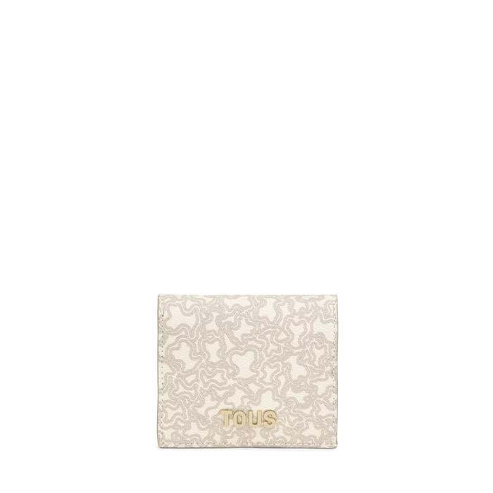 Cartera TOUS para muje de la colección Kaos Mini Lines fabricada en lona color beige. Esta atractiva cartera cuenta con cierre mediante botón a presión. En su interior cuenta con 6 ranuras para tarjetas, un compartimento para billetes y un bolsillo con cierre de cremallera para monedas.