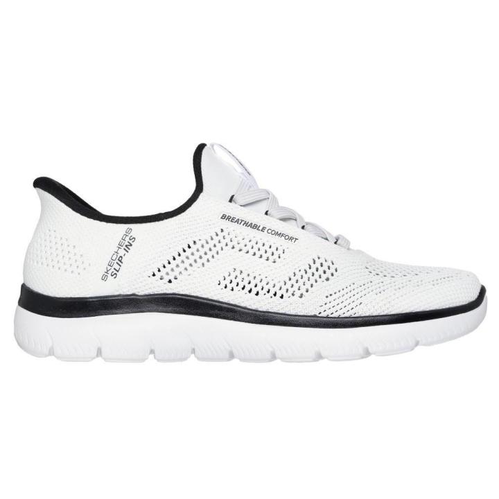 Zapatillas deportivas de estilo running con cordones elásticos. Diseñado con nuestra exclusiva Heel Pillow™, este modelo vegano cuenta con un exclusivo panel moldeado Skechers Slip-Ins® en el talón, una parte superior de malla con cordones fijos y una plantilla con amortiguación Skechers Air-Cooled Memory Foam™.