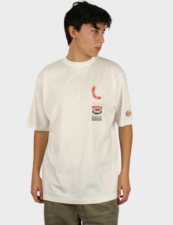 Buddy consolida sus divertidos gráficos en tendencia streetwear haciendo un guiño a lo mucho que gusta el chile en Puerto Vallarta, México. ¿Por qué será? Respecto a las características principales de la prenda debes saber que la camiseta Chili queda ligeramente holgada, es de manga corta, cuello redondo e incorpora un original parche de PVC cosido a la manga con logo Buddy? El modelo mide 1,78 y lleva talla M