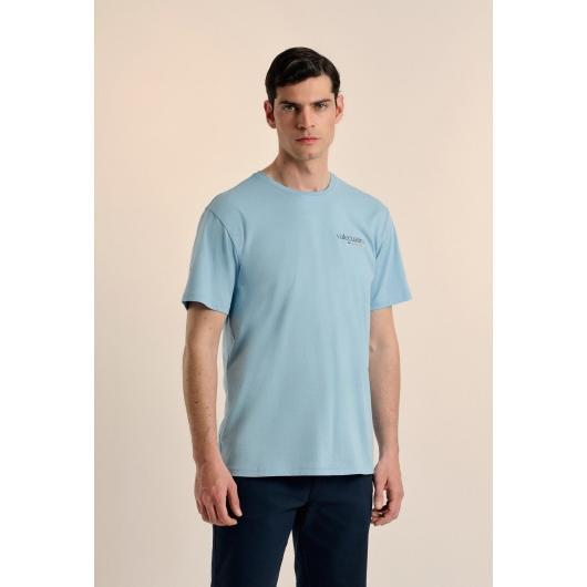 Camiseta color celeste de algodón, regular fit con logo en el pecho y gráfico en la espalda. Cuello redondo y manga corta.