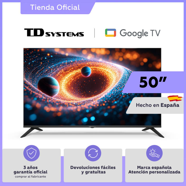 Smart TV 50 pulgadas 4K Hey Google Official Assistant con control por voz. Televisor Android 14 - TD Systems K50DLC21GLE