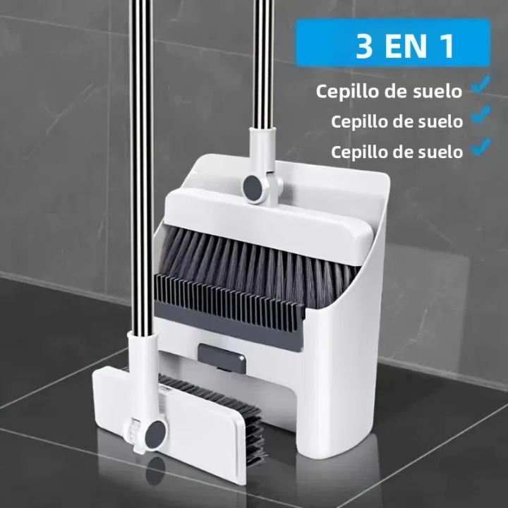 este kit de limpieza 3 en 1 combina una escoba plegable, un recogedor y un cepillo de mano para una limpieza integral del hogar.
