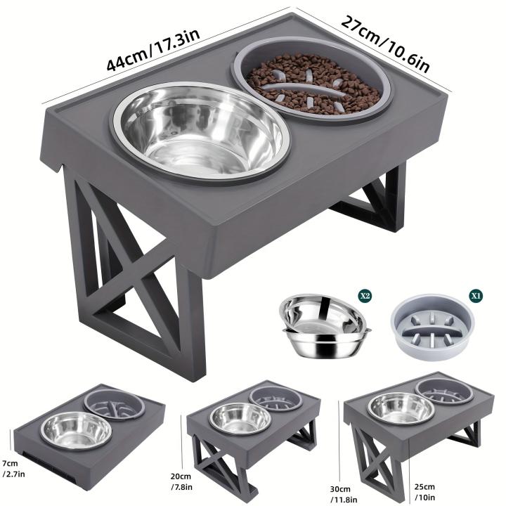 Soporte de cuencos dobles para perros, 3 platos de alimentación lenta para mascotas de altura ajustable, mesa de comederos de agua para perros medianos y grandes