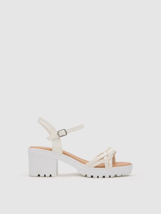 Añade un toque chic a tus looks veraniegos con estas sandalias de plataforma con tiras trenzadas. Fabricadas en polipiel. Suela tipo track de goma con tacón ancho medio y plataforma en la parte delantera. Cierre de pulsera en el tobillo. Este calzado destaca por su comodidad y versatilidad.