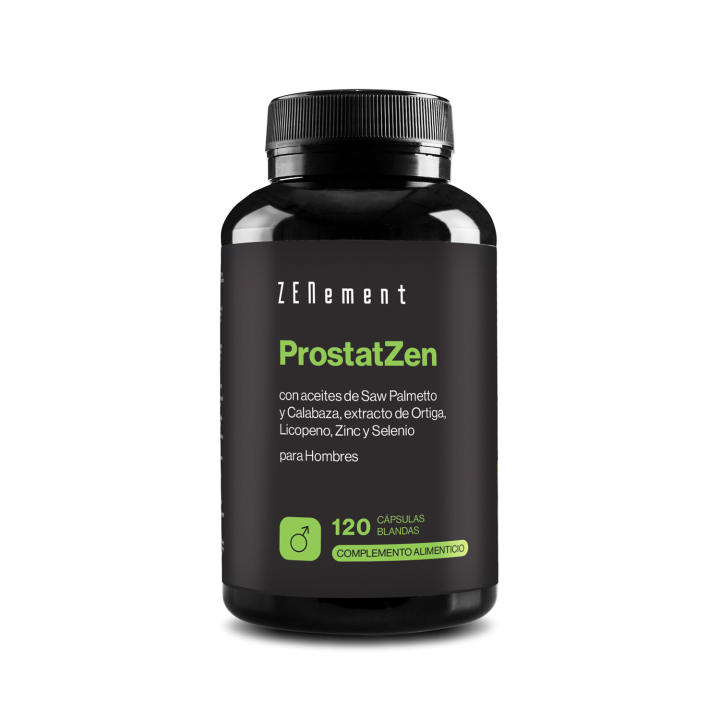 Alérgenos alimentariosNinguno | Contenido de la etiqueta de nutriciónContenido por dosis (2 cápsulas blandas): Aceite de calabaza 600 mg, Aceite de Saw Palmetto 320 mg, Extracto de Ortiga 120 mg, Licopeno 15 mg, Zinc (Gluconato de Zinc) 10 mg (100% VRN*), Selenio (L-Selenometionina) 55 µg (100% VRN*). Otros ingredientes: cápsula blanda (gelatina bovina, glicerina), emulgente (lecitina de girasol), espesante (cera de abeja), colorante (caramelo natural). *VRN: Valores de Referencia de Nutrientes. |