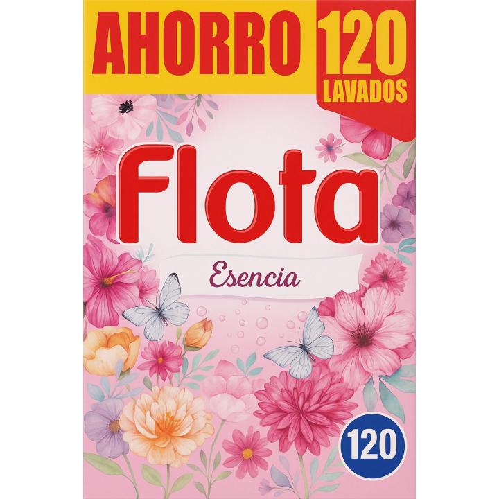 Palabras clave: detergente en polvo, Flota Esencia, 120 lavados, 6.36 kg, limpieza profunda, fragancia duradera, alta eficiencia, lavadoras, agua fría, agua caliente, suavidad, colores vivos, economía, eficiencia, aroma fresco, manchas difíciles, larga duración.