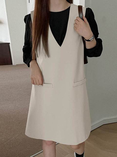 Vestido elegante con cuello de otoño, manga larga, ropa informal holgada para mujer