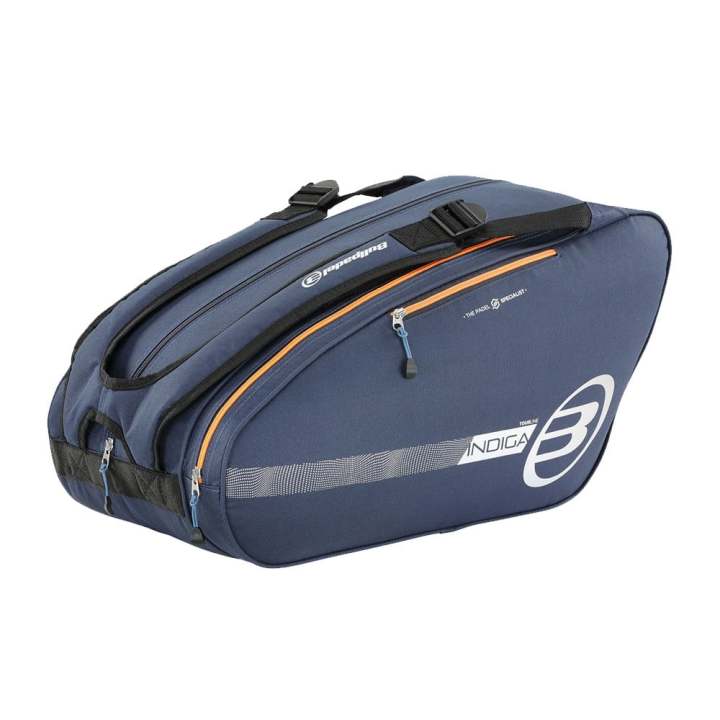El paletero Bullpadel BPP-24015 TOUR Azul Navy es una opción ligera y versátil para los jugadores de pádel que buscan un transporte cómodo y funcional para su equipamiento. Con capacidad media, este paletero ofrece un amplio compartimento principal diseñado para almacenar todos los elementos esenciales necesarios para la práctica de este deporte. Cuenta con un compartimento acolchado específico con capacidad para dos palas, asegurando su protección durante el transporte. Un pequeño bolsillo lateral exterior proporciona espacio adicional para objetos más pequeños o accesorios. Fabricado en poliéster 600D, el paletero TOUR se destaca por su resistencia y durabilidad. Con unas dimensiones de 56x29x28 cm, este paletero se presenta en un color azul navy, añadiendo un toque de estilo a la funcionalidad que ofrece, convirtiéndolo en una elección ideal para jugadores exigentes que buscan calidad y comodidad en su equipamiento.