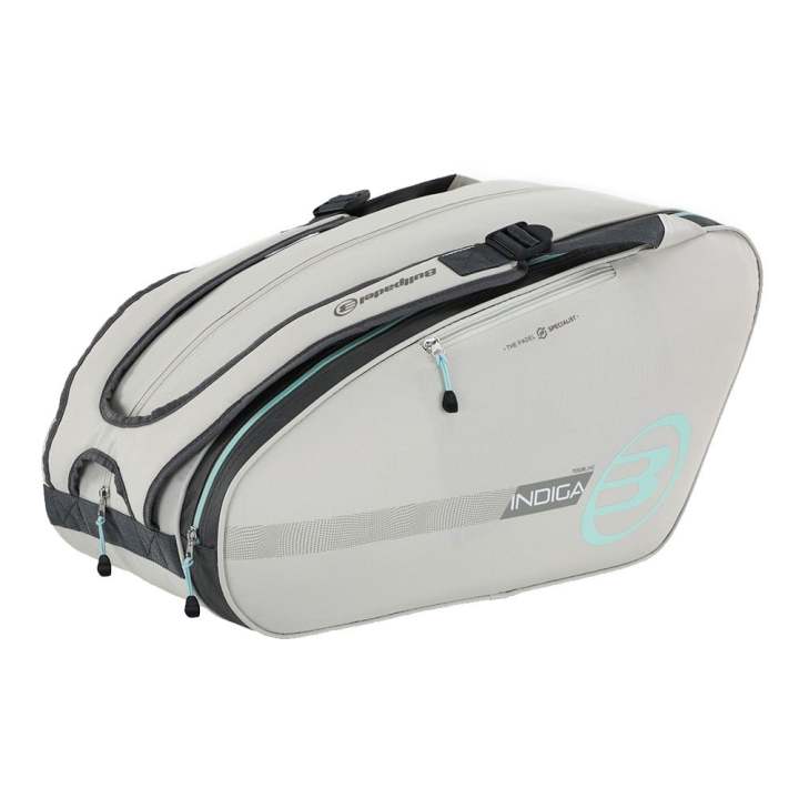 El paletero Bullpadel BPP-24015 TOUR color gris es una opción ligera y versátil para los jugadores de pádel que buscan un transporte cómodo y funcional para su equipamiento. Con capacidad media, este paletero ofrece un amplio compartimento principal diseñado para almacenar todos los elementos esenciales necesarios para la práctica de este deporte. Cuenta con un compartimento acolchado específico con capacidad para dos palas, asegurando su protección durante el transporte. Un pequeño bolsillo lateral exterior proporciona espacio adicional para objetos más pequeños o accesorios. Fabricado en poliéster 600D, el paletero TOUR se destaca por su resistencia y durabilidad. Con unas dimensiones de 56x29x28 cm, este paletero se presenta en un color hueso, añadiendo un toque de estilo a la funcionalidad que ofrece, convirtiéndolo en una elección ideal para jugadores exigentes que buscan calidad y comodidad en su equipamiento.