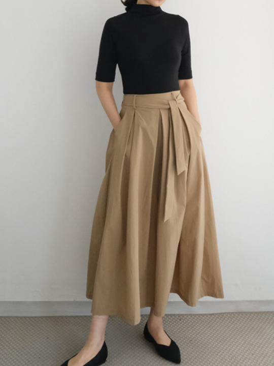 La falda midi de corte en A favorece a diversas siluetas, ofreciendo un movimiento elegante y fluido con cada paso.