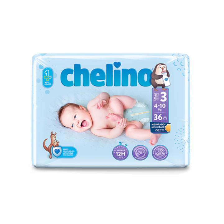 Pañales Chelino Talla 3 son la solución ideal para bebés que pesan entre 4 y 10 kg. Es un pañal ergonómico con bandas laterales muy elásticas para que se adapte a la perfección al cuerpo del pequeño que, junto a su doble sistema de seguridad, evita todo tipo de escapes.