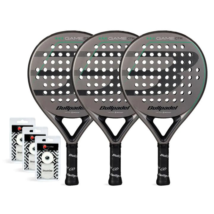Tripack Bullpadel Game Control Gris, dominio totalLa Bullpadel Game CTR Gris Oscuro se destaca como una pala creada para maximizar el control en cada jugada. Su forma redonda y balance bajo proporcionan un punto dulce extenso que incrementa la precisión y la confianza en la cancha, minimizando errores y potenciando la seguridad del jugador. Con un peso ligero, entre 360-375 gramos, garantiza confort incluso en enfrentamientos prolongados, minimizando el agotamiento y asegurando un manejo fluido en todo momento. Su diseño sofisticado en gris oscuro con detalles discretos añade un toque contemporáneo y profesional que no pasa desapercibido.Para jugadores estratégicos de nivel intermedioEsta pala redonda Bullpadel está concebida para jugadores de nivel intermedio que valoran la técnica y estrategia sobre la potencia. Es perfecta para quienes disfrutan controlando el ritmo del juego, manteniendo la iniciativa en cada punto y buscan una pala que aporte estabilidad tanto en defensa como en ataque.Su alta maniobrabilidad la convierte en la compañera ideal para jugadores que desean avanzar en su juego con seguridad, mejorando su rendimiento y precisión sin perder comodidad.Características y tecnologías principalesForma redonda: Amplio punto dulce para mayor precisión y seguridadBalance bajo: Máxima comodidad durante partidos extensosConstrucción ligera: Facilita la libertad de movimiento, agilidad y velocidad en cada golpeGran manejabilidad: Ideal para reacciones rápidas y golpes controladosDiseño moderno: Estética en gris oscuro con detalles elegantes y sofisticadosCompra este tripack Bullpadel en Padel NuestroLa Bullpadel Game CTR Gris es la opción ideal si deseas dominar cada punto con inteligencia y precisión. Diseñada para jugadores que comprenden que el control es clave, esta pala combina comodidad, seguridad y estilo.No dejes pasar la oportunidad de llevar tu juego al siguiente nivel con Bullpadel y conviértete en el dueño absoluto de la cancha.