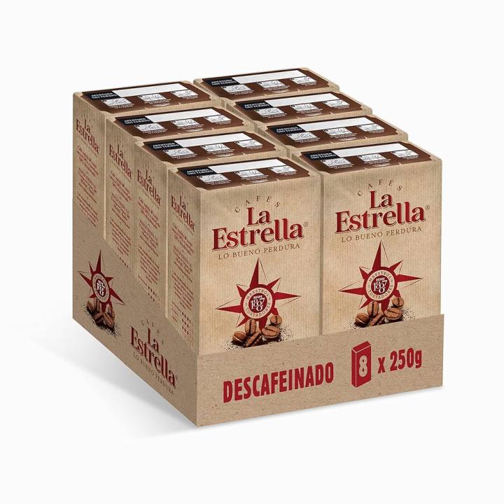 La Estrella Descafeinado mezcla es un café de tueste intenso con notas a caramelo propias de la variedad torrefacto, Ligeramente amargo y con matices tostados, Un café que se transmite de generación en generación, que te conecta con el pasado, con el presente y con los que te rodean.