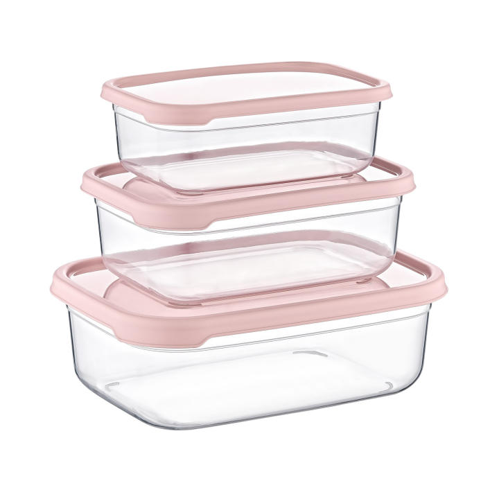 Fabricados en combinación de plástico PP y polipropileno transparente para que puedas ver con facilidad lo que se encuentra en su interior. Estos tuppers cumplen con todos los estándares de calidad. No contienen sustancias dañinas y se encuentran libres de BPA. Apilables, de forma rectangular. Sus tapas son herméticas, por lo que ofrecen un sellado antigoteo. Aíslan los olores y permiten transportar los alimentos sin riesgo de derrame. Disponibles con tapa en color rosa, verde o gris.