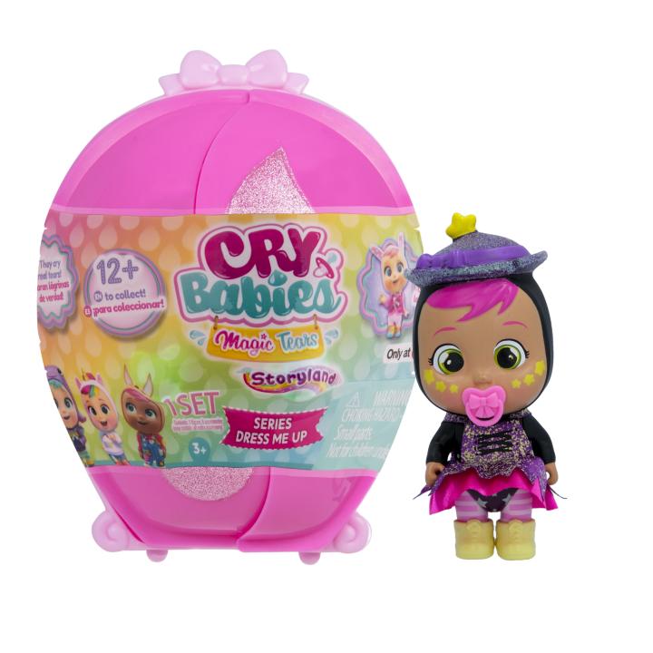 ¿Qué incluye? Dress me up Agatha: ¡Llega Agatha el personaje rare de la colección Dress Me Up w2 de los Bebés Llorones Lágrimas Mágicas!¡Agatha se prepara para Halloween con su pieza de ropa! ¡Así que las/os niñas/os podrán vestir a su muñeca Lágrimas Mágicas favorita! La cápsula tiene forma de armario, donde en su interior las/os niñas/os pueden descubrir 8 accesorios sorpresa: un biberón mágico, un chupete, una percha, un espejo, un par de zapatos, una pieza de ropa y una hoja de pegatinas. Dale de beber con su biberón mágico, aprieta su barriguita y llorará ¡lágrimas de verdad!