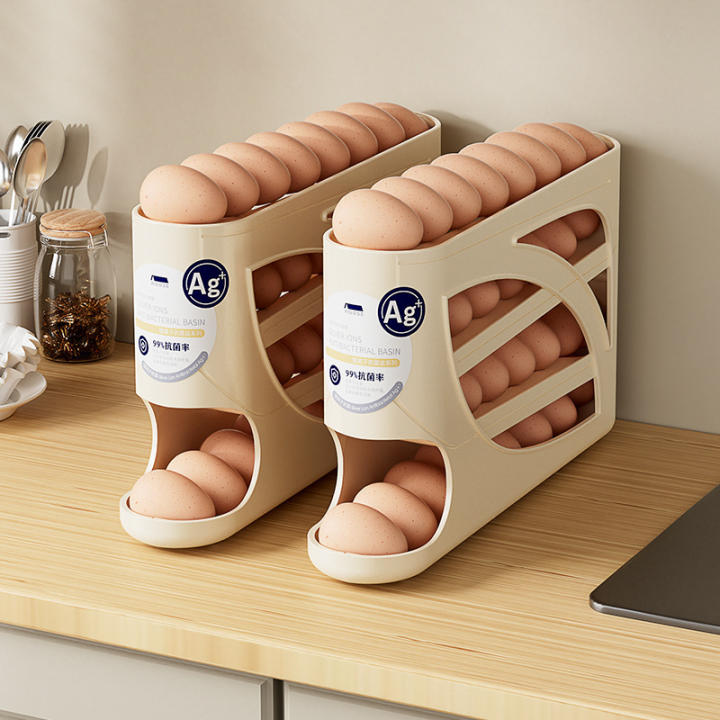 este huevero cuenta con un dispensador automático rodante, lo que facilita el acceso a los huevos sin tener que abrir la puerta del refrigerador repetidamente.