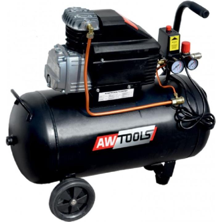 Compresor AWTOOLS AC50, 50L, 2.0HP Black Line, ideal para uso profesional, potente, gran capacidad de almacenamiento, rendimiento superior para herramientas neumáticas.