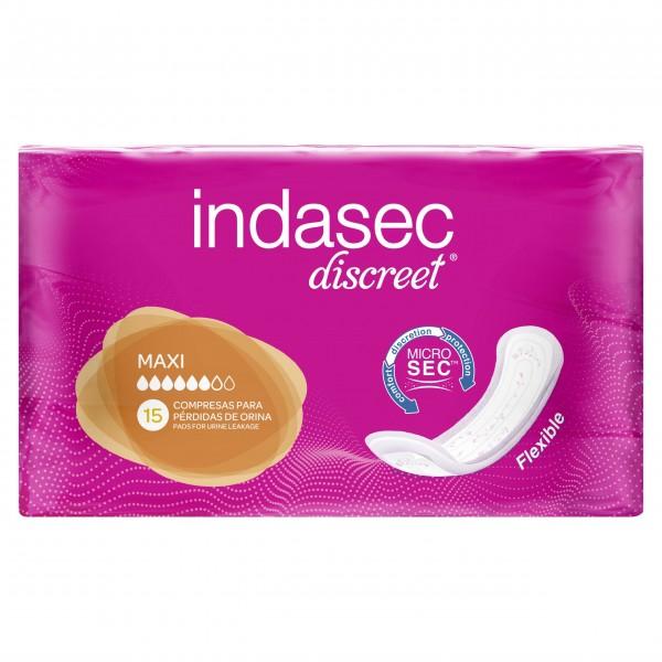 Indasec discreet maxi se encuentra indicado para incotinencia urinaria y pérdidas leves de orina.INDASEC DISCREET MAXI 15 COMPRESASIndasec compresas incontinencia ligera Maxi son unas compresas higiénicas que han sido diseñadas para garantizar el confort de todas las personas con pérdidas leves de orina. Indasec discreet maxi dispone de bandas dermoprotectoras con el fin evitar la irritación en las que se ha añadido extracto de grosella negra, amblaty y aloe vera de modo que ofrezca una sensación de suavidad. Así mismo Indasec incorpora elementos neutralizantes del olor. Elige la que necesitas en función a la pérdida que padezcas, entre la gama micro, mini, normal, o extra y maxi (estás últimas muchas veces son aconsejables para pérdidas nocturnas).¿Cómo se utiliza? Las compresas se deben colocar con el adhesivo en la zona central de la braguita. Las compresas están indicadas para garantizar el confort de las mujeres con pérdidas leves de orina. Posee hilos elásticos en la entrepierna para una mejor adaptación a la anatomía femenina.Composición: Indasec compresas incontinencia Maxi 15u está formulado con: - Extracto de ambiaty: estimula la regeneración celular - Grosella negra: único aceite de origen natural capaz de aportar a la vez aceites grasos esenciales omega 3 y omega 6 - Aloe Vera: efecto antiinflamatorio. EL PRECIO INCLUYE 3 UNIDADES