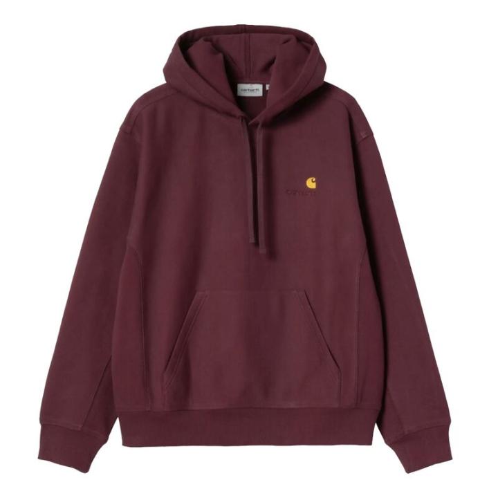 Sudadera Granate Carhartt Hooded American Script Sweatshirt Rondo de Silueta Amplia y HolgadaDetallesLa Hooded American Script Sweatshirt está confeccionada con una mezcla de algodón y poliéster peinado para mayor suavidad y calidez sin perder transpirabilidad. Incluye un bolsillo canguro. Esta prenda tiene una silueta amplia y holgada. ajuste holgado peinado capucha ajustable bolsillo canguro bordado americano La altura del modelo es de 185 cm y usa la talla M I028279_33K_XX