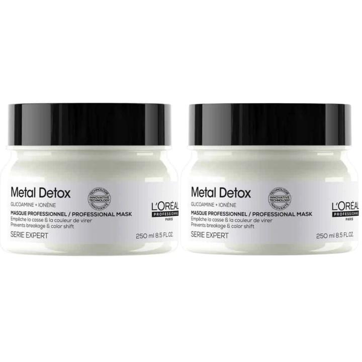 El Pack x2 L’Oréal Professionnel Metal Detox Mascarilla 250ml ofrece un tratamiento profesional que protege, repara y fortalece el cabello tras procesos de coloración, decoloración o balayage.