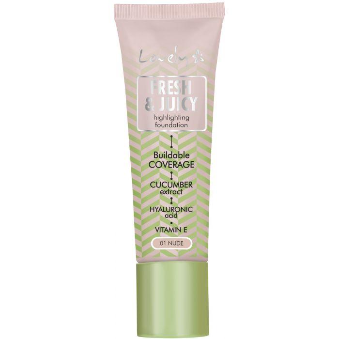 Base de maquillaje iluminadora de cobertura media. Contiene ácido hialurónico, extracto de pepino y vitamina E. Deja la piel radiante sin efecto máscara durante todo el día. Disponible en 4 tonos diferentes.