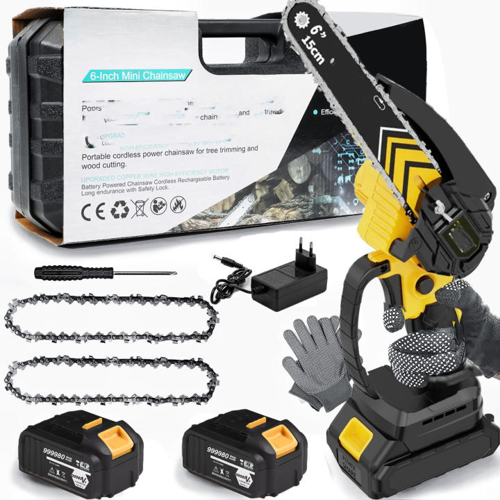 【KIT COMPLETO】El kit de la motoserras a bateria incluye 1x Mini Sierra de Cadena, 2x Baterías, 2x Cadenas de 6 pulgadas, 1x Cargador, 1x Gafas de Seguridad, 1x Par de Guantes, 1x Cepillo de Limpieza, 1x Kit de Herramientas, 1x Botella de Aceite Vacía, 1x Destornillador, 1x Barra Guía (6 pulgadas). ¡Todo lo que necesitas para tus tareas de corte!