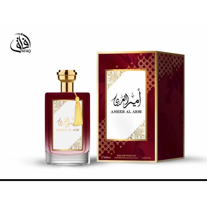 Ameer Al Arbi es una fragancia que encarna la esencia de la nobleza oriental y el encanto atemporal del mundo árabe. Su nombre, que significa “El Príncipe Árabe”, refleja perfectamente el espíritu de este perfume: majestuoso, sofisticado y profundamente seductor. Creado por la casa AFAQ, este Eau de Parfum combina ingredientes tradicionales de la perfumería árabe con un toque moderno, ofreciendo una experiencia olfativa rica, cálida y envolvente.