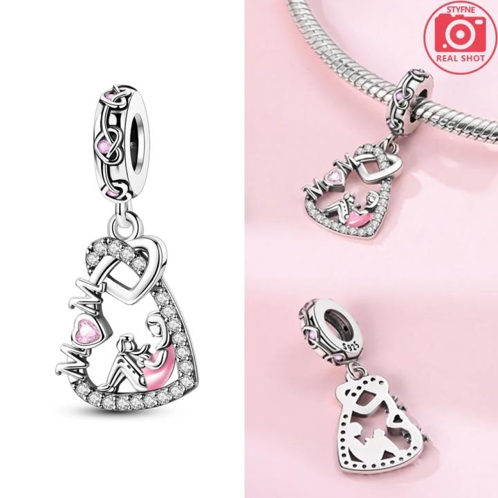 Abalorios Originales de Plata 925, Cuentas en Forma de Corazón de Padres e Hijos, Compatibles con Pulseras de Plata 925 para Mujer, Fabricación de Joyas DIY