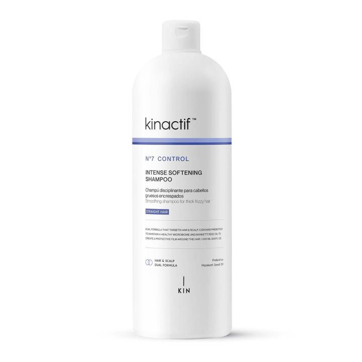 KINACTIF Nº7 CONTROL Intense Softening Shampoo es un champú profesional diseñado para transformar el cabello rebelde, encrespado o difícil de manejar. Su fórmula avanzada limpia suavemente mientras aporta una suavidad profunda, reduce el frizz y deja el cabello más controlado, flexible y sedoso desde el primer lavado.