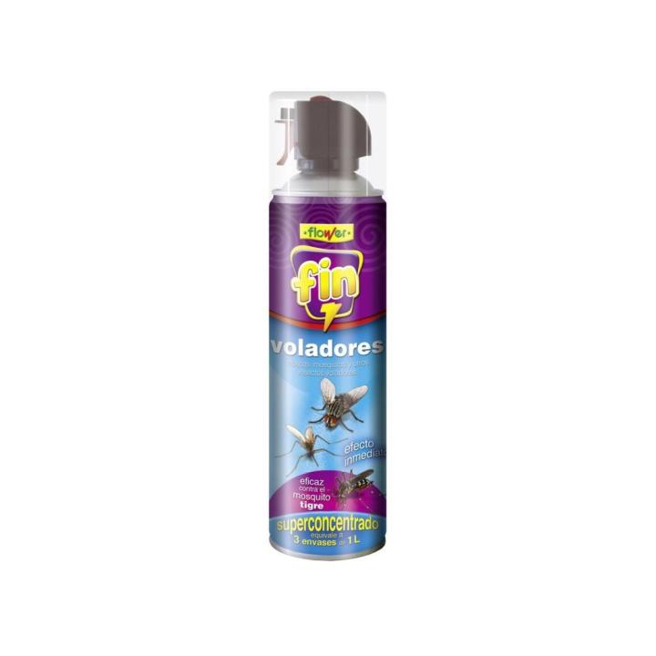 El insecticida Fin Insectos con acción preventiva y curativa contra insectos voladores. Efectivo contra mosquitos, moscas, polillas, tábanos, avispas,... en casa, la terraza y el jardín. Cuando se pulveriza una zona de la casa, terraza o jardin, Fin Insectos forma una barrera protectora que evita que los insectos se acerquen al lugar. El Fin Insectos no emite ningún olor desagradable, por lo que no molesta para usar en el interior de nuestro hogar, ninguna molestia para nuestra familia y mascotas.