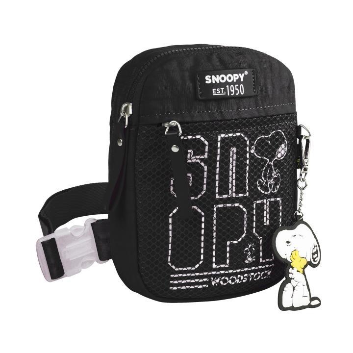 - Detalhes que Marcam a Diferença: Cuenta con correa de bandolera satinada a juego, ojetes decorativos, tiradores de cordón deportivo y un adorable llavero de goma personalizado de Snoopy incluido.