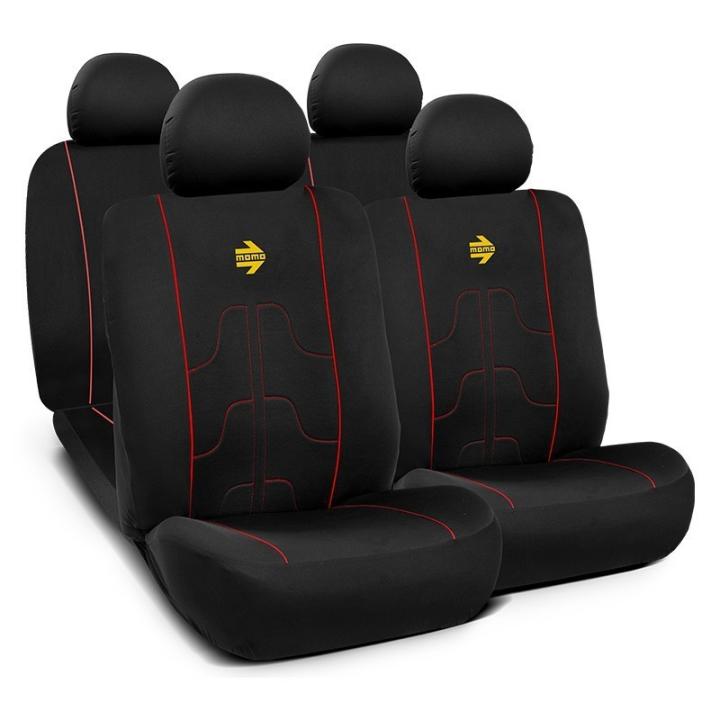 GENERAL: Juego de cubreasientos MOMO original. Set de 11 piezas para el coche completo: seis delanteras (dos bancos, dos respaldos y dos reposacabezas) y cinco traseras (un banco, un respaldo y tres apoyacabezas). Fundas asientos coche universales y adaptables al 99% de los vehiculos del mercado. Además, protegerá los asientos de tu coche contra el desgaste y la suciedad, mejorando el interior del vehiculo. MOMO significa moda y calidad. Apuesta por una de las mejores fundas para asientos de coche y dale un toque original a tu vehiculo.